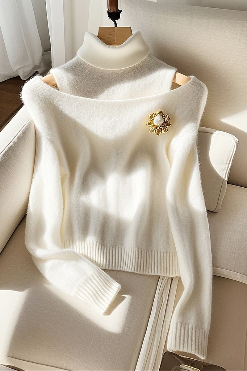 【tops】オフショルダーハイネックニットトップス M28764