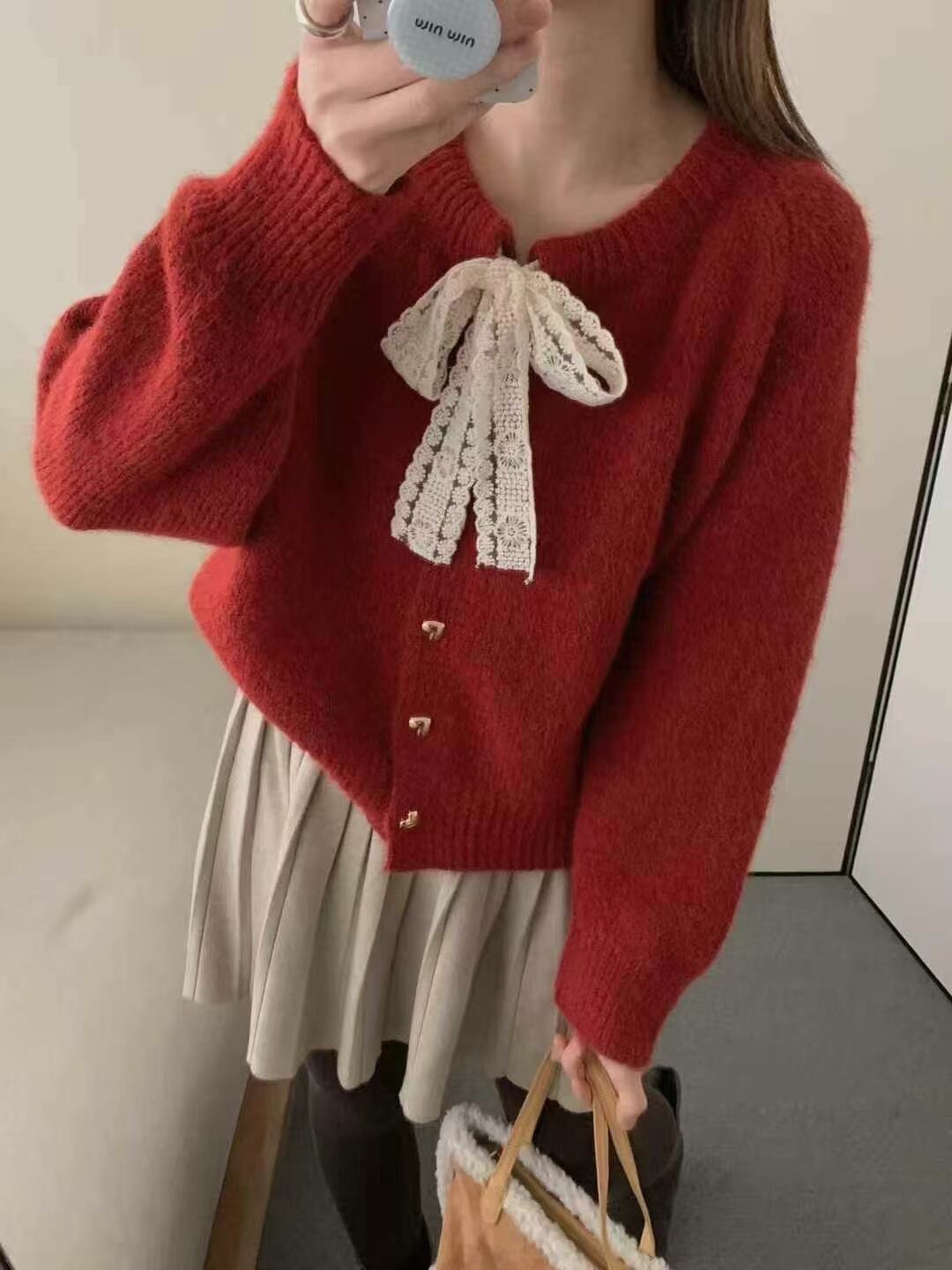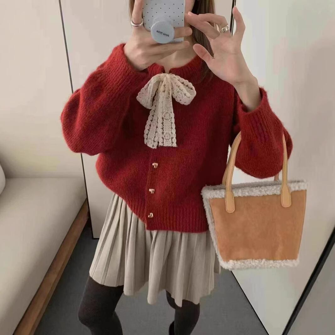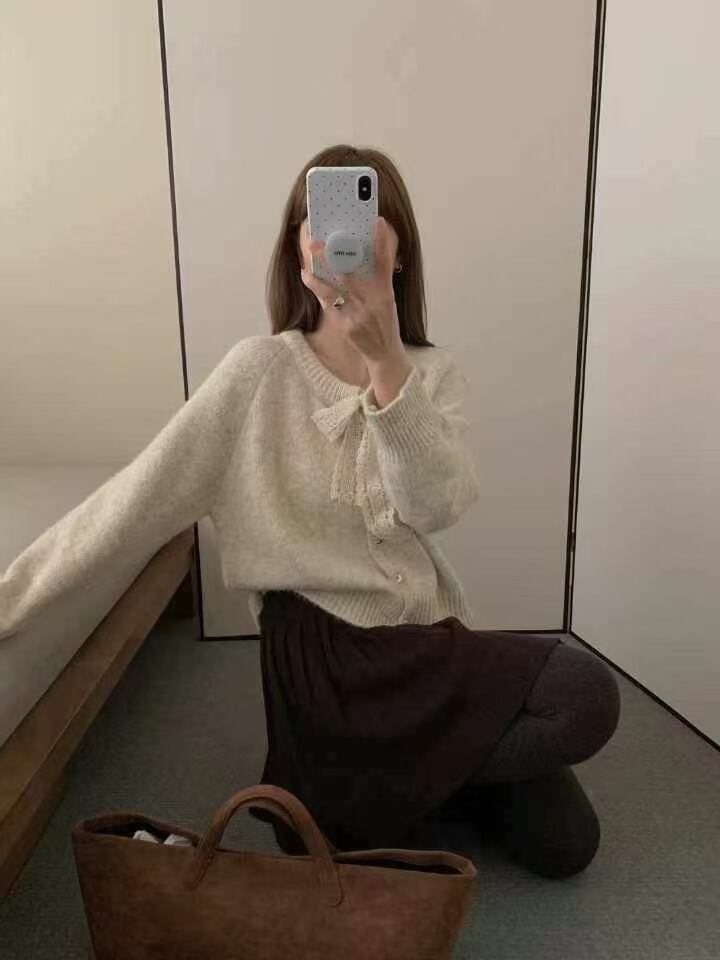 【outer】リボン付きニットカーデ M28821