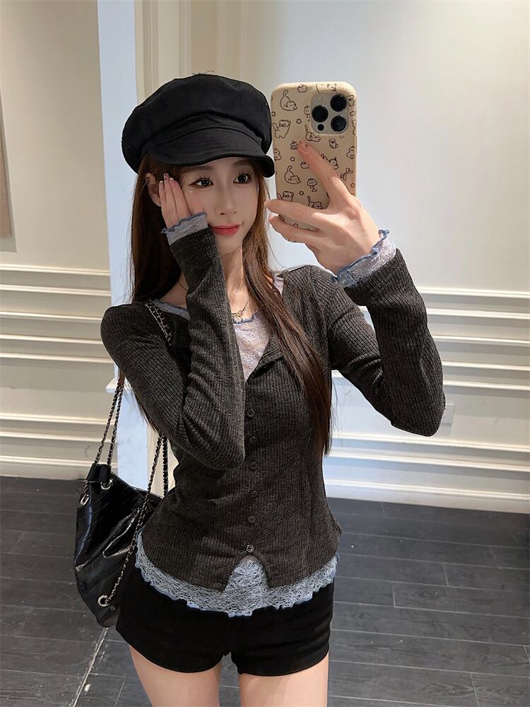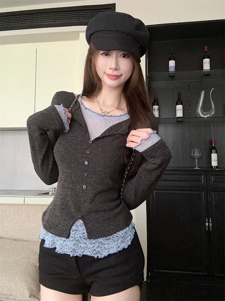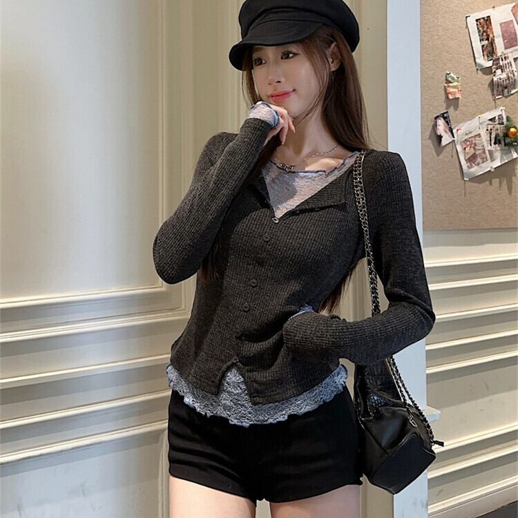 【【tops】レースドッキングニットトップス M28831