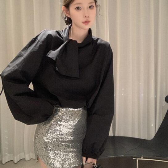 【tops】リボン付きシャツブラウス M29627