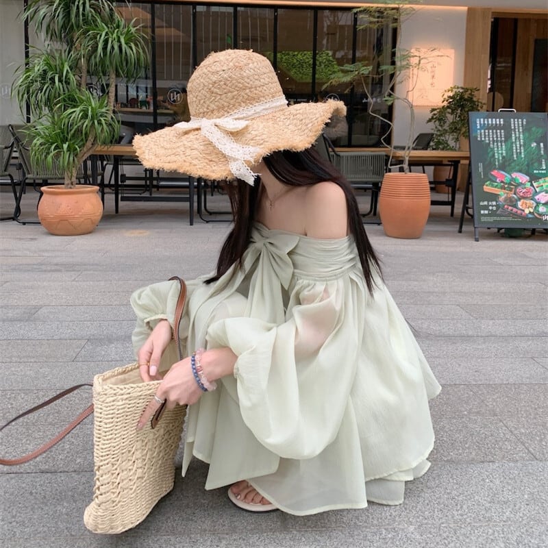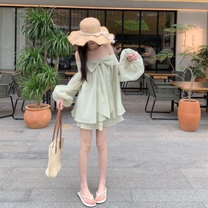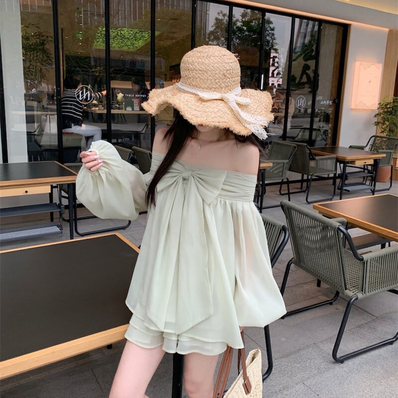 【set】ボートネックリボン付きトップス×スカートセット M29650